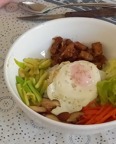 - Al final le pones un huevo frito y, si quieres, la salsa picante de Gochuchang, que está muy rica.